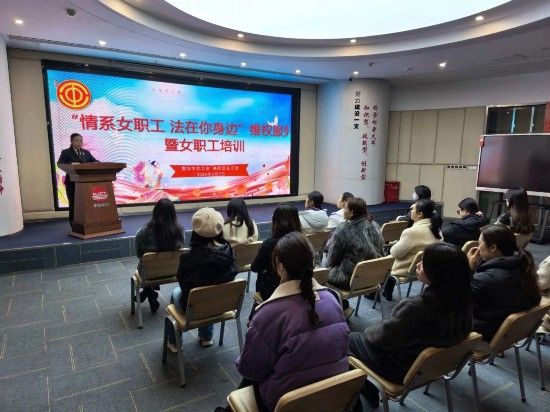 襄陽市總工會、高新區總工會在漢江雙創產業園聯合舉辦維權服務暨女職工培訓活動。工作人員圍繞《婦女權益保障法》《女職工勞動保護特別規定》等法律,以趣味競答形式開展授課﹔旗袍協會形體禮儀老師則帶來職場形象、公務禮儀、溝通社交等互動教學。現場還向女職工贈送了女性成長、職場提升等書籍,幫助大家在輕鬆氛圍中提升法律意識與職業素養。