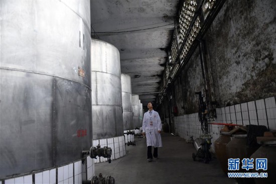 11月11日,范国琼在车间内查看原酒酒罐。新华社记者 金良快 摄