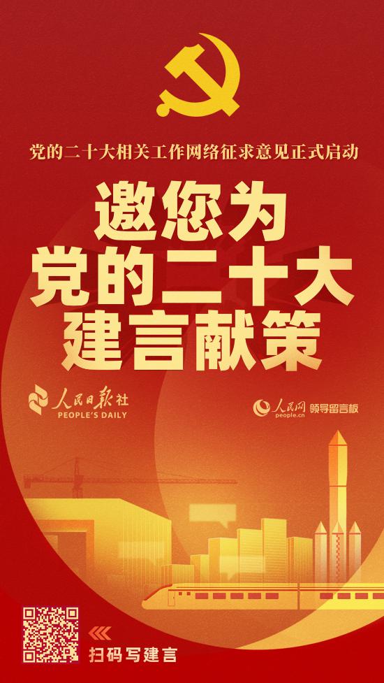 党的十九届六中全会决定,党的二十大于2022年下半年在北京召开。开展党的二十大相关工作网络征求意见,充分彰显了以习近平同志为核心的党中央发扬民主、集思广益的优良作风,是我们党坚持以人民为中心、尊重人民主体地位、走好群众路线的重要体现,是发挥中国特色社会主义制度优势、推进全过程人民民主的生动实践,是适应互联网时代新要求、推进国家治理体系和治理能力现代化的有益探索。