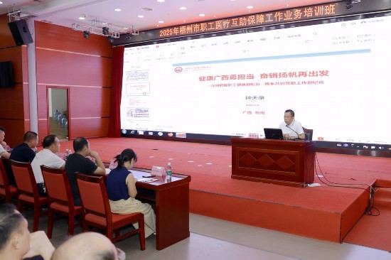 广西职工保障互助协会会长钟天录出席启动仪式,并为参加2025年梧州市职工医疗互助保障业务培训班的学员授课。(工人日报客户端记者庞慧敏 通讯员刘甲平)