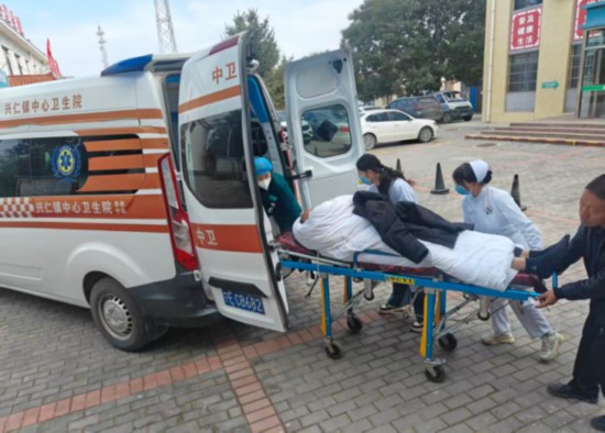 “段师傅,刚才体检结果显示,你患有急性心梗。请你不要剧烈运动,马上就近前往兴仁镇中心卫生院接受救治,治疗需要家人陪同,我们立即送你过去。”